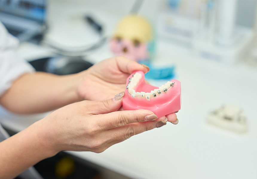 ワイヤー矯正中は装置に食べ物が詰まりやすくなるため、食後の歯みがきは丁寧に行うようにしましょう。歯間や歯の根元はみがき残しが増えますので、注意してみがく必要があります。
